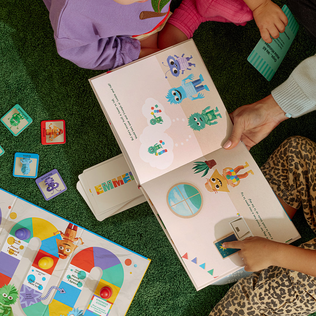 Emotion Seekers Game & Three Book Set! This bundle pairs the Emotion Seekers board game with three hardcover picture books, giving families and classrooms playful ways to explore big feelings through game-play and storytime. Perfect as a meaningful gift, this all-in bundle brings Emmers’ world of big feelings to the kids you love.